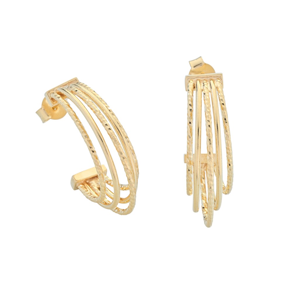 Gli Orecchini multicerchi di luce - Lux sono realizzati con una speciale lavorazione multifilo per amplificarne la luminosità.