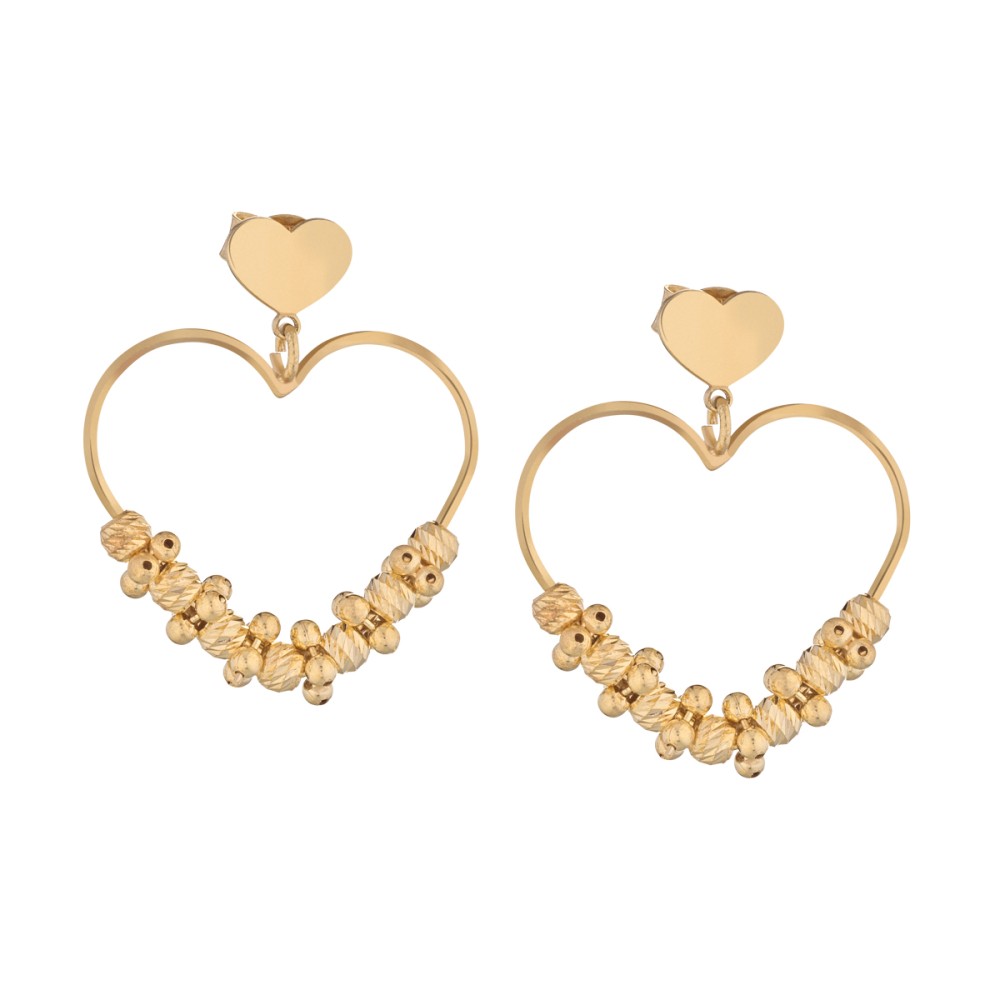 Gli Orecchini cuori trionfi di boules - Petite Boules sono disponibili in argento dorato e hanno una lunghezza di 2,6cm.